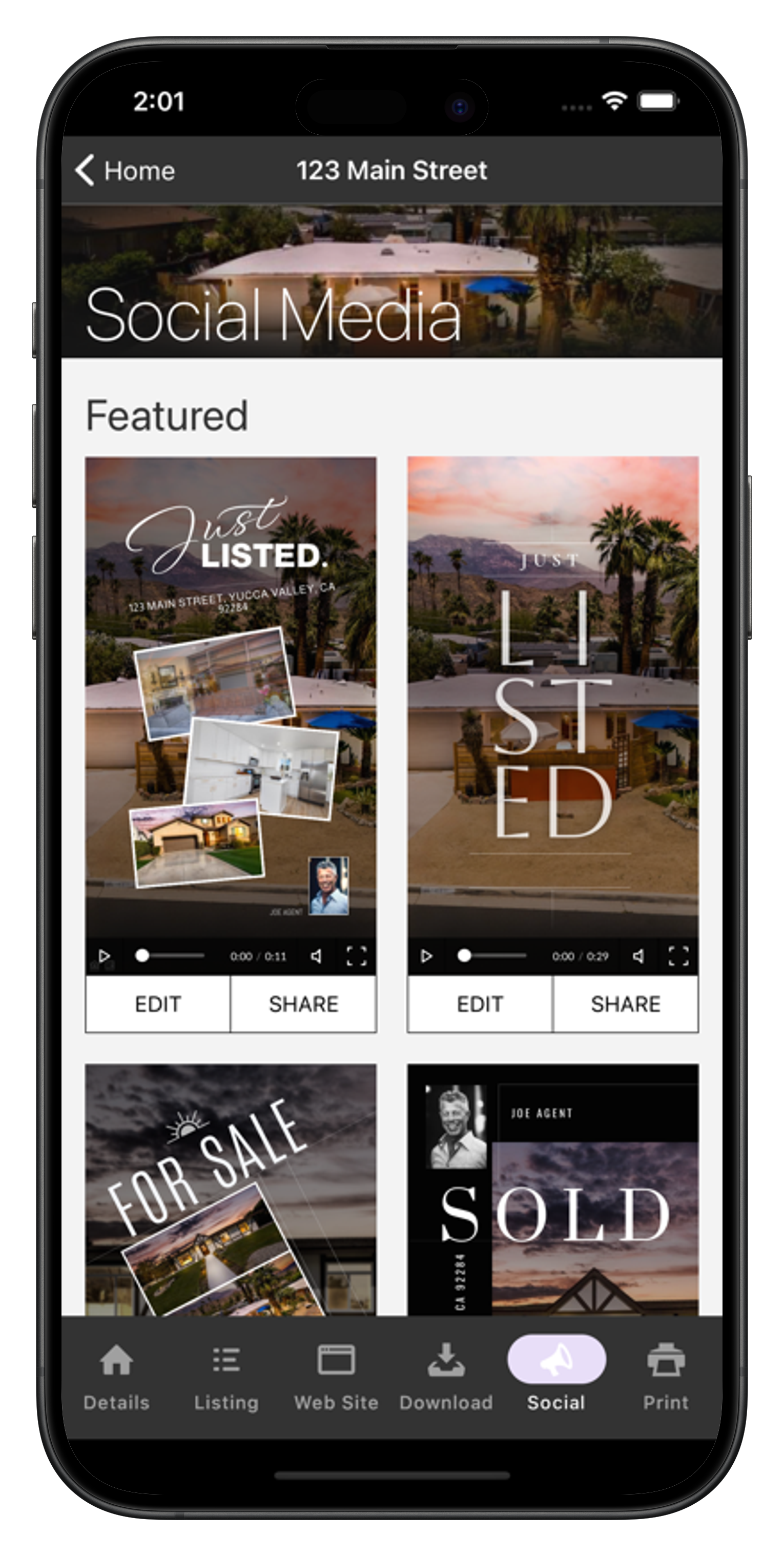 One-tap access to all your listing assets. Photos, videos, floor plans, and more!