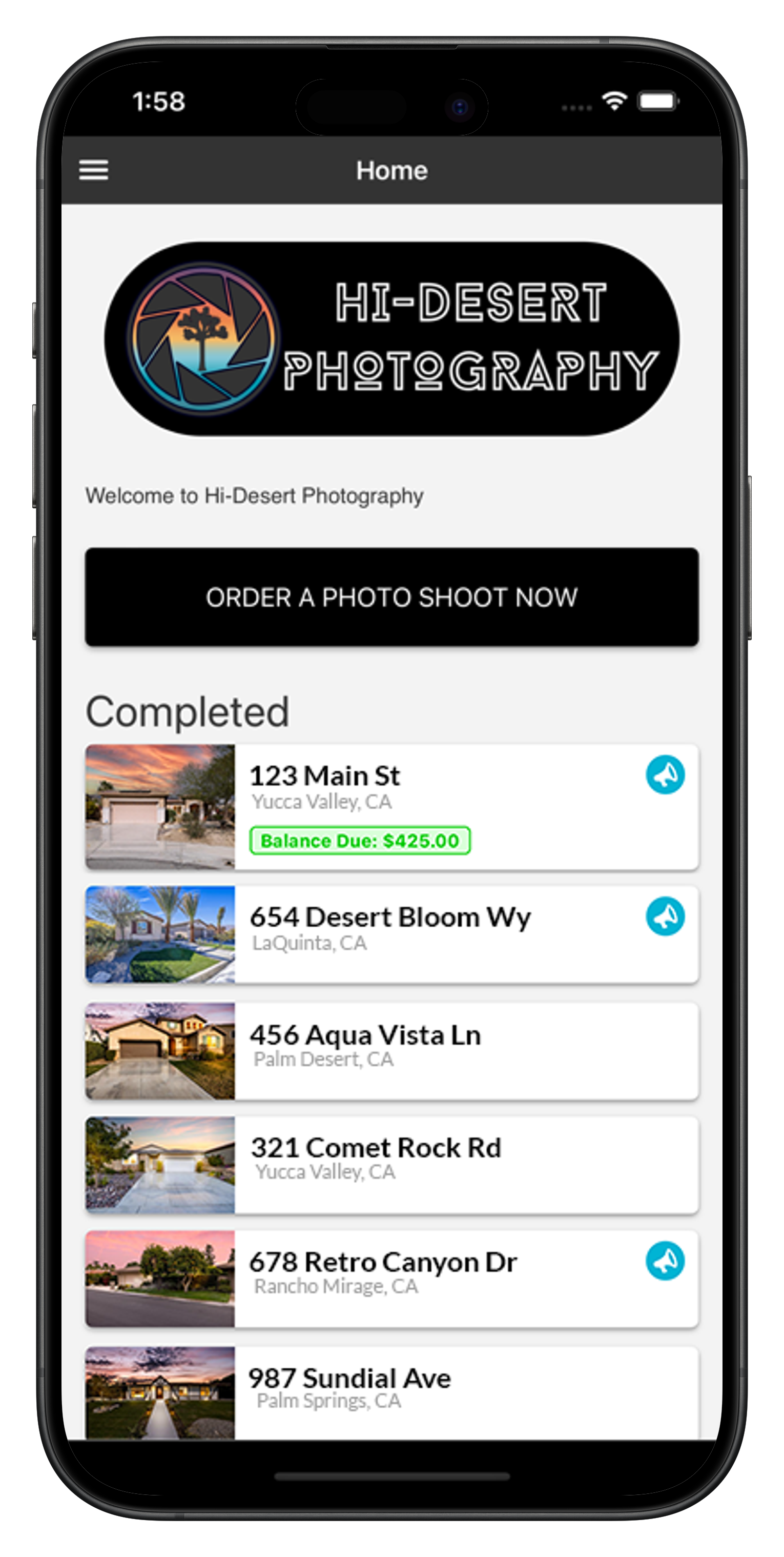 Book, track, download, and share media with the Hi-Desert Photography app.
